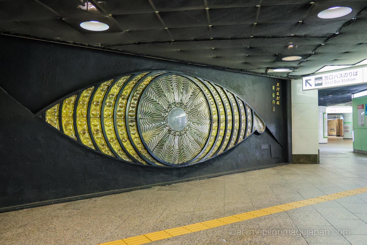 This striking sculpture is a real public artwork created in 1969 and is located in the underground rotary on the west side of Shinjuku Station.