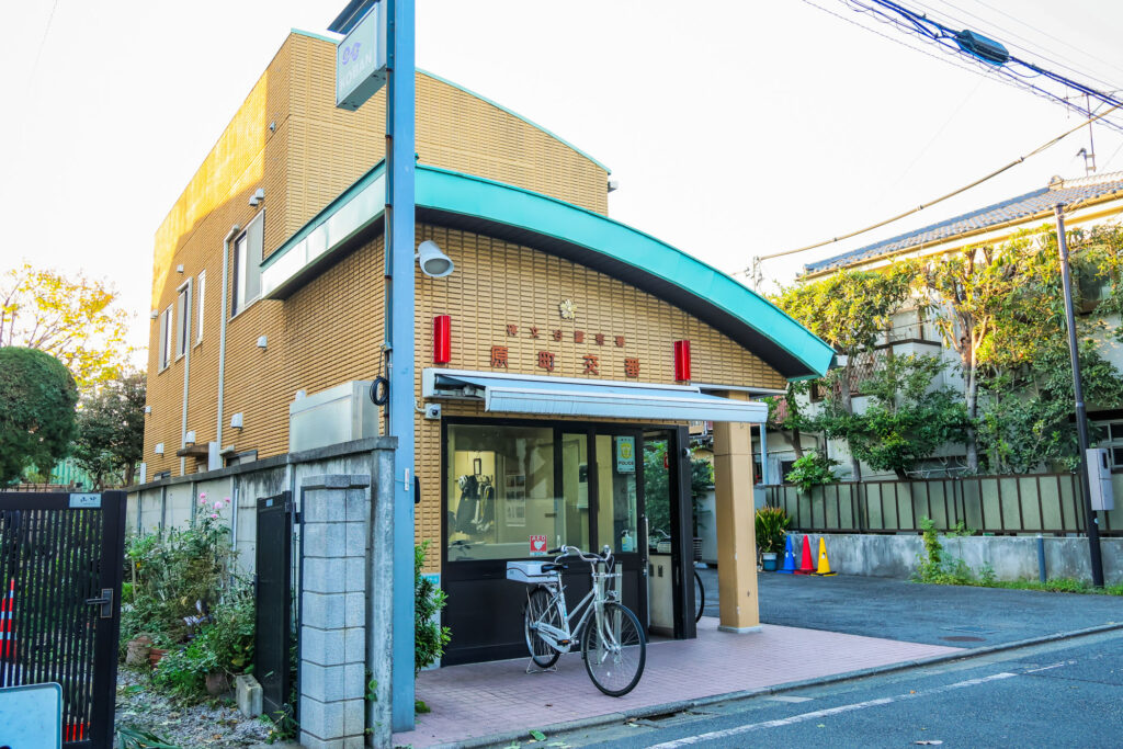 A small neighborhood police box commonly found near stations and intersections in Japan. Kōban are used for community policing, directions, and lost-and-found assistance. In anime, they often appear as familiar landmarks along everyday routes, as seen during Ichikawa and Yamada’s bicycle scene.